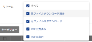 CSVデータのダウンロード済みのステータスで検索することができます。