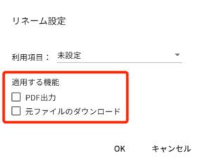 4-21-2ポップアップが開いたら、設定したい利用項目を選択します。※PDF出力は別途オプションです。